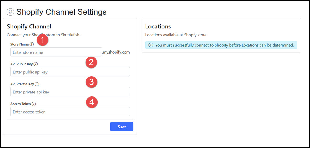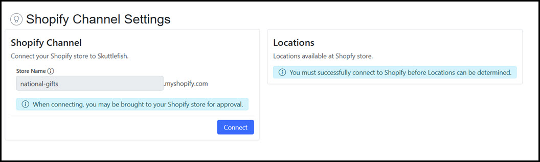 | Introduction | A Channel represents a connection between Skuttlefish and a Shopify Storefront. Skuttlefish is deployed as a Shopify Custom App which requires it to be directly installed to the Shopify Storefront (rather than through the Shopify App Store). Once installed to the Shopify App Store as a Shopify Custom App, Skuttlefish uses secure access tokens generated by the Shopify Storefront to establish connectivity and manage the syncronization of storefront inventory. For more information, contact the Skuttlefish support team. Note: Skuttlefish currently supports connectivity and synchronization with a single Shopify channel per customer. Support for multiple Channels—including connections to additional Shopify storefronts or other platforms—is planned for a future release. |