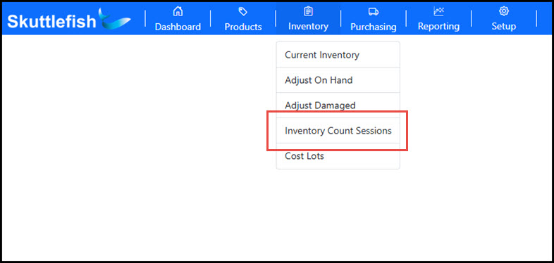 The Inventory Count Session Manager is accessible by navigating to Inventory > Inventory Count Sessions.
