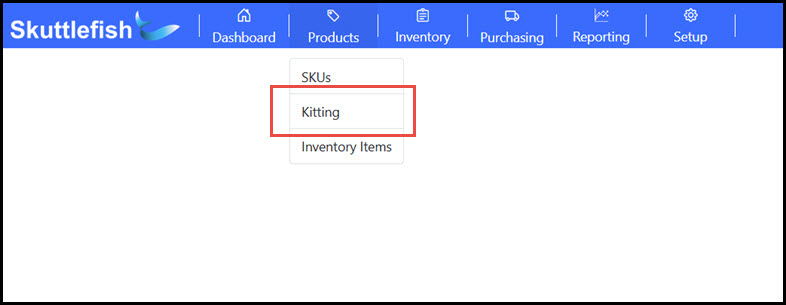 The Kitting Grid is accessible by navigating to Products > Kitting.