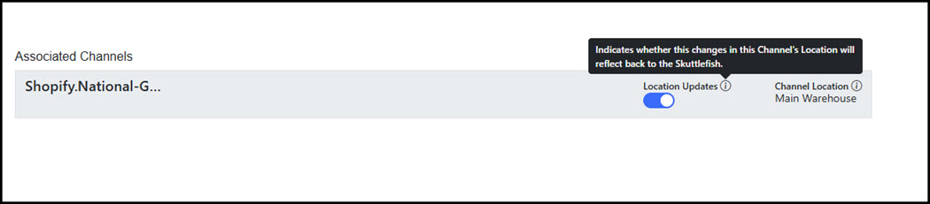 The Location Updates flag determines if Shopify updates to the Location are synchronized to Skuttlefish.