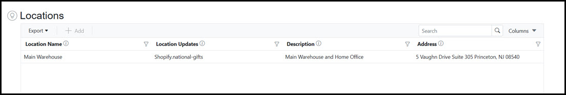 The Locations Grid is accessible by navigating to Setup > Locations.